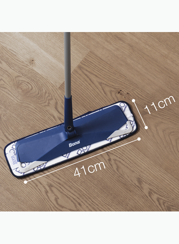 BONA Premium Microfiber Floor Mop je určený k čisteniu všetkych typov podláh. Je určený pre drevené podlahy, tvrdé a elestické povrchy podláh. Mop má ergonomickú teleskopickú tyč, stieracia časť mopu má gumové okraje, ktoré chránia nábytok a extra savá mikrovlákonová utierka sa ľahko prichytí k mopu pomocou suchého zipsu. Mop dosiahne aj do ťažko prístupných miest. Pre dosiahnutie najlepších výsledkov čistej drevenej podlahy použijte Bona čistič na parkety, pre olejované podlahy použijte Bona čistič na olejované podlahy. Pre keramickú dlažbu a laminátové podlahy použijte Bona čistič na laminátové podlahy a dlaždice. Pre PVC, vinyl, linoleum použijte Bona Clean R50.